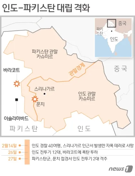 2019년 2월 26일 인도 공군이 미라주 2000 전투기(Dassault Mirage 2000) 12대로 인도-파키스탄 접경 지역인 카슈리무즈 바리코트지역(Balakot, Khyber Pakhtunkhwa, Pakistan)에 있는 무슬림 테러 단체 '자이시 에 무함마드(JeM, Jaish-e-Mohammed)'의 캠프에 대한 대규모 공습을 실시하며 "2019년 인도-파키스탄 분쟁"이 발생한다 ( 발라콧 공습, Balakot airstrike, 2019년 2월 26일).